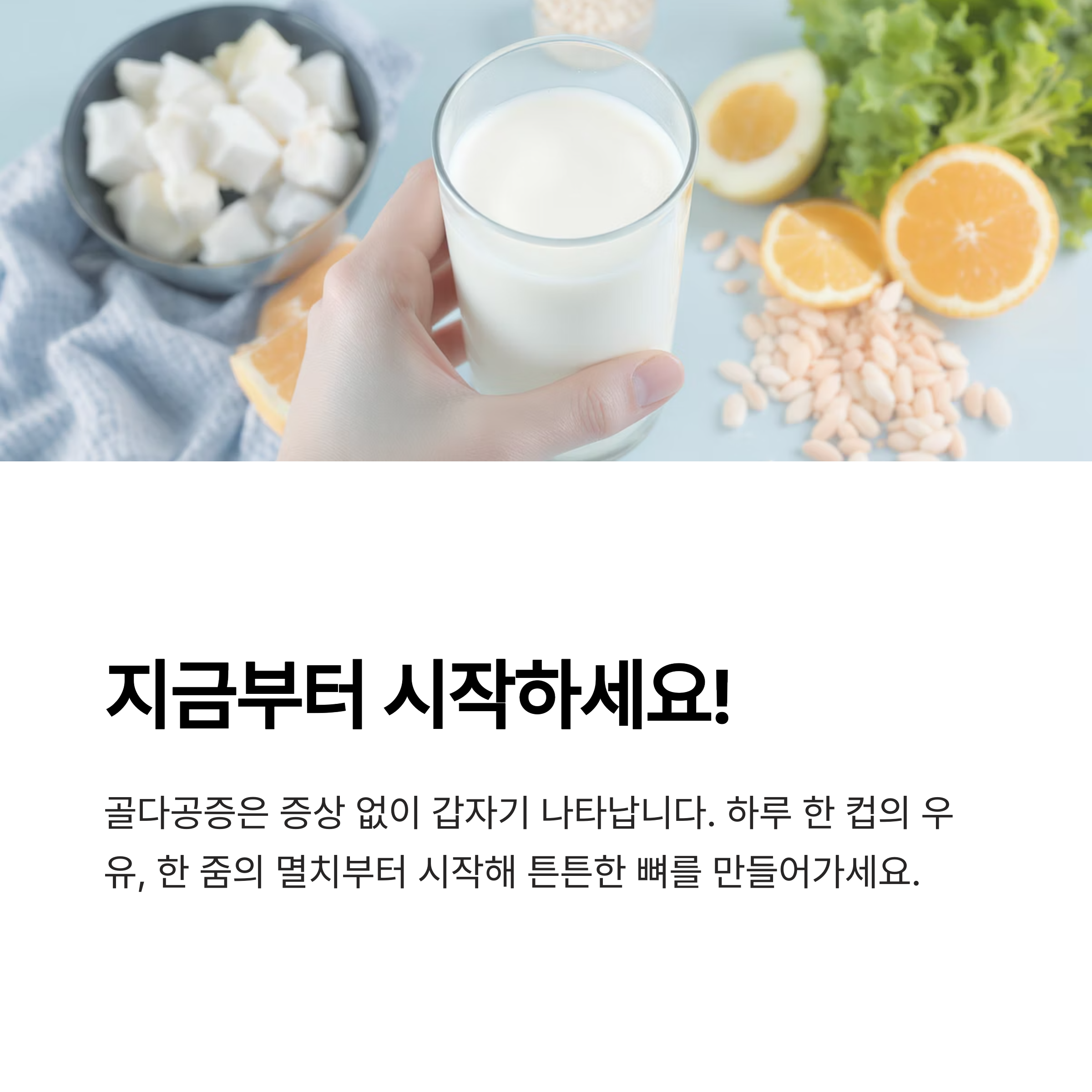 하루 한 컵의 우유, 한 줌의 멸치부터 시작해보세요.