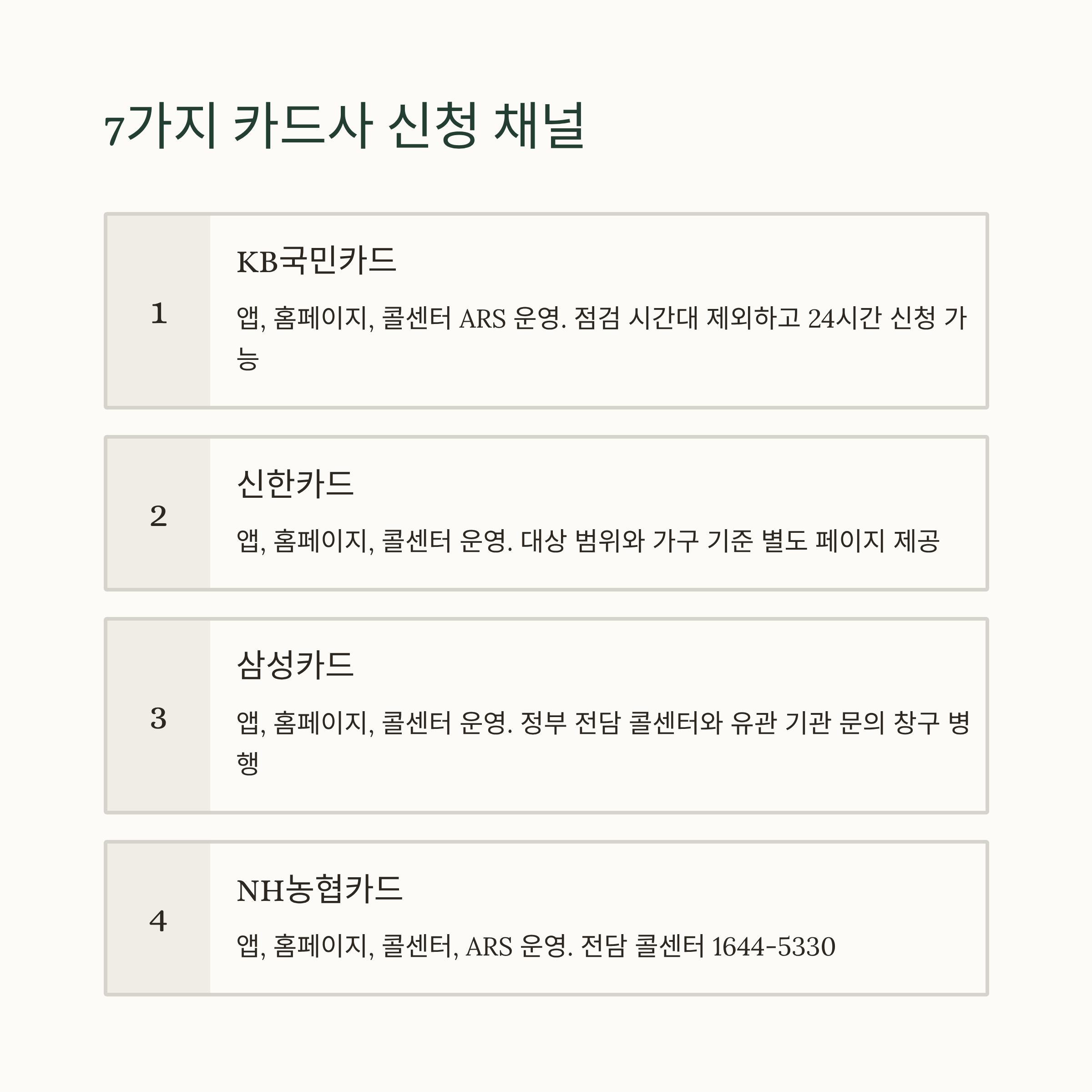 | 카드사 | 대표 신청 채널 | 운영 참고 |