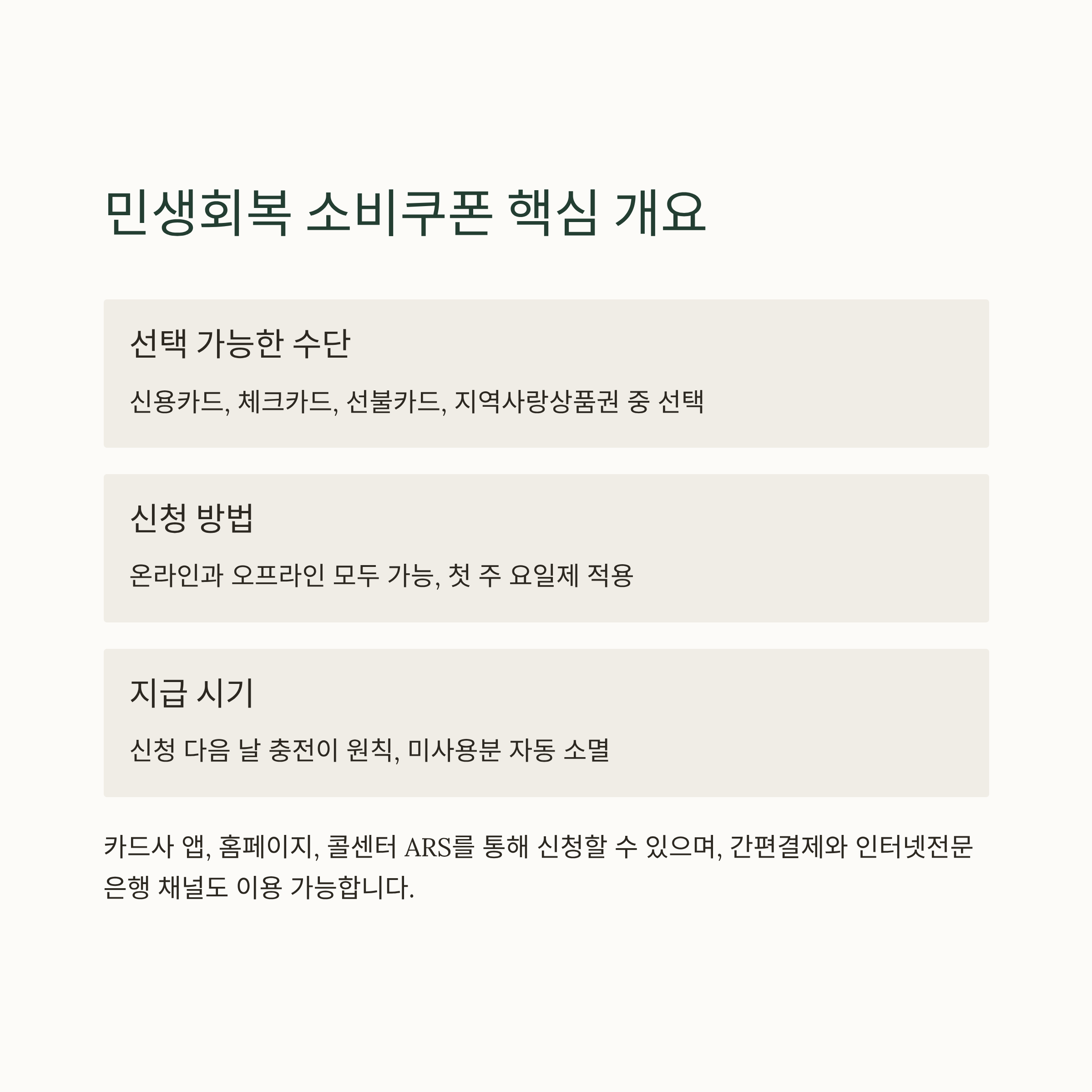 민생회복 소비쿠폰 민생회복 소비쿠폰 핵심 일정과 카드사 앱 신청 경로도 함께 안내합니다.
