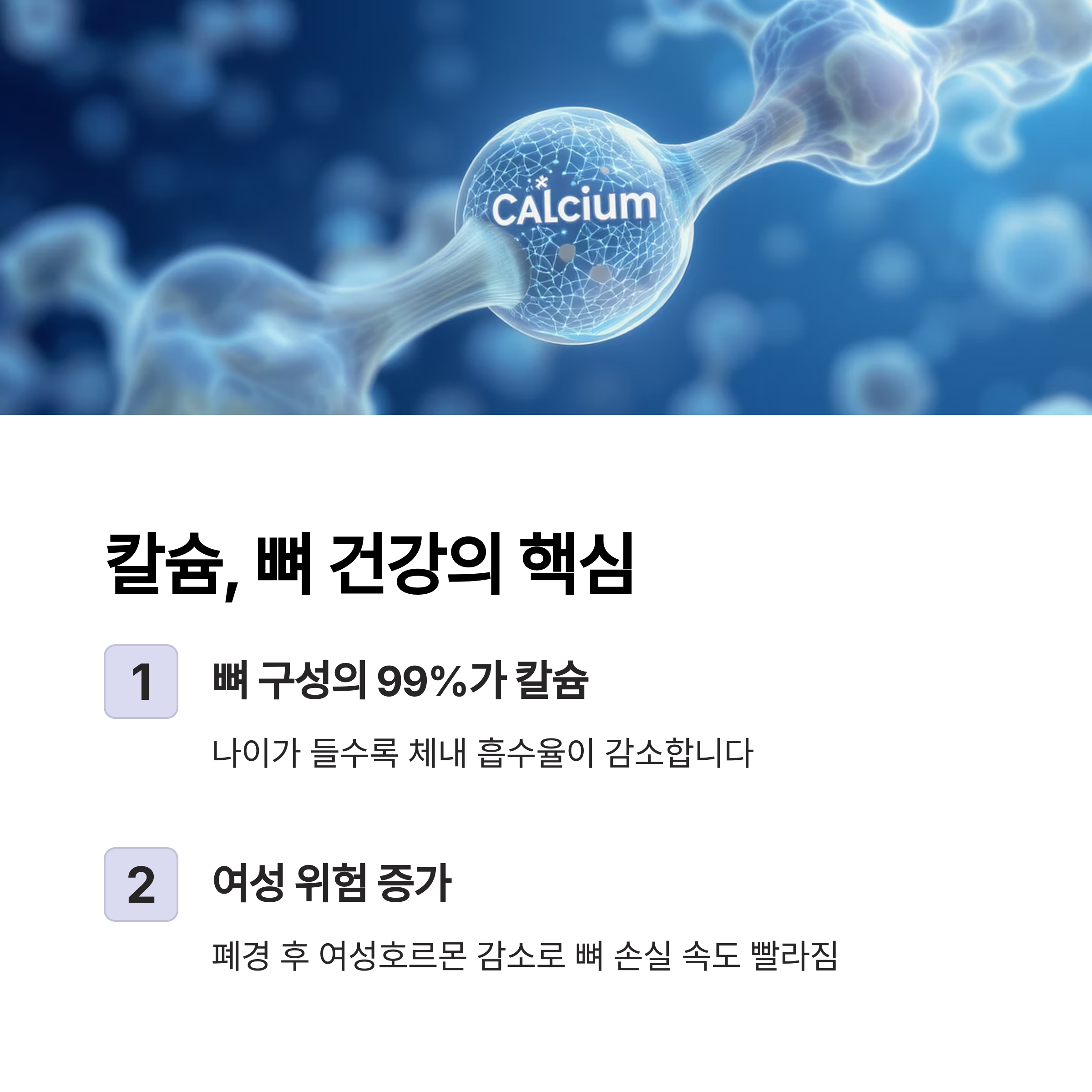 칼슘은 인체 뼈 구성의 약 99%를 차지합니다. 나이가 들수록 체내 흡수율이 줄어들고