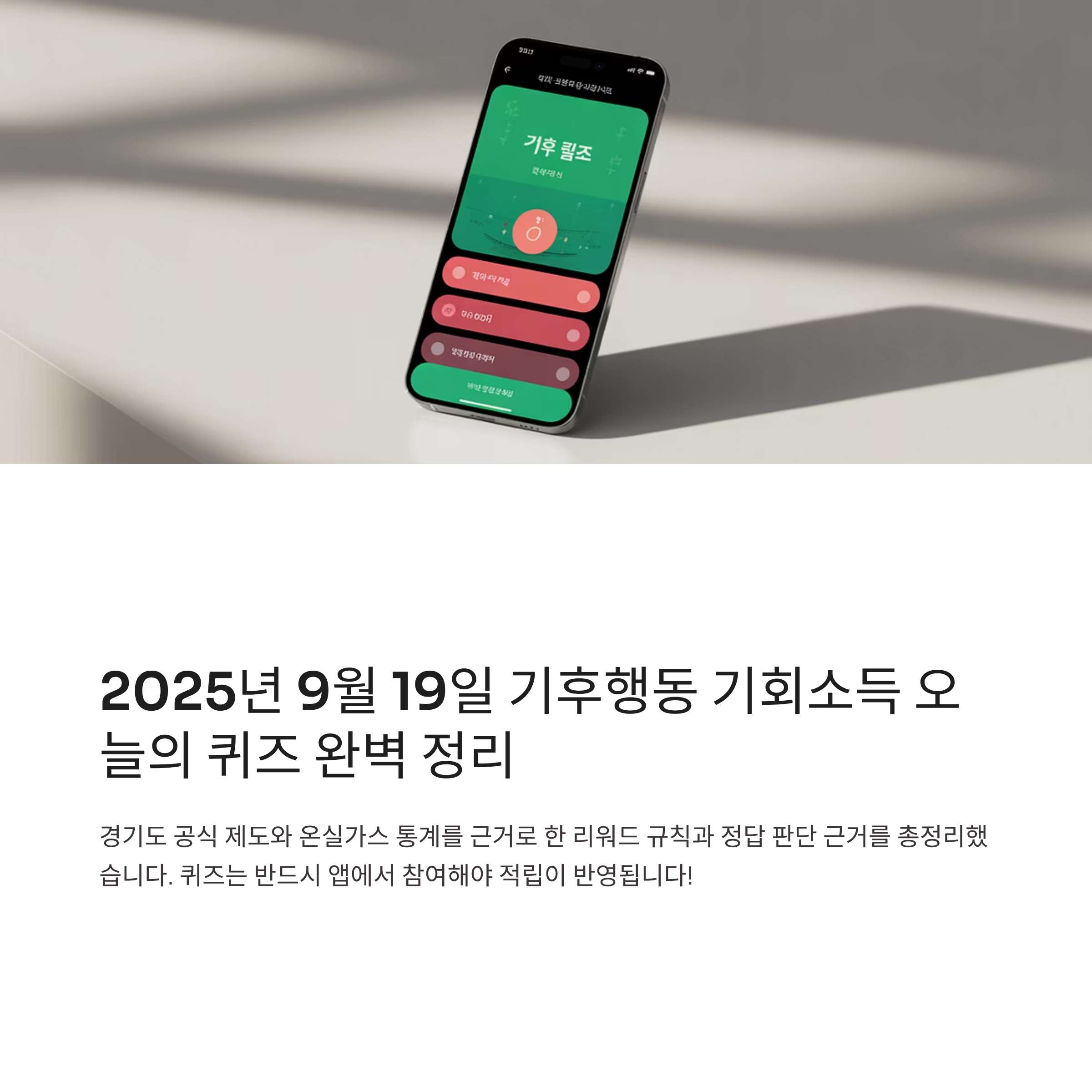 오늘 공개된 기후행동 기회소득 오늘의 퀴즈 핵심을 사실 근거로 정리합니다. 경기도의 공식 제도 소개와 온실가스 통계를 근거로 리워드 규칙과 정답 판단 근거를 함께 안내합니다. 퀴즈는 앱 내에서 참여해야 적립이 반영되며,