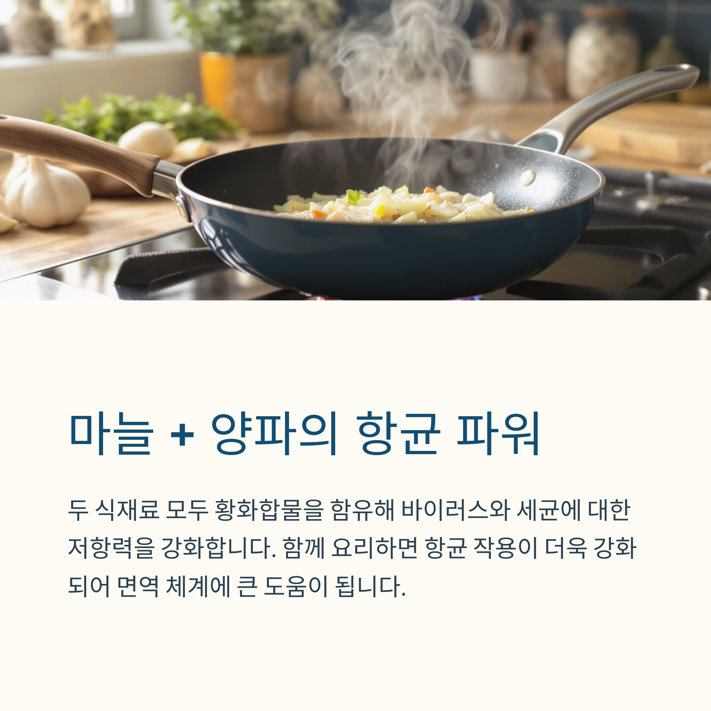 마늘 + 양파 | 항균 작용 상승, 감염 예방 |