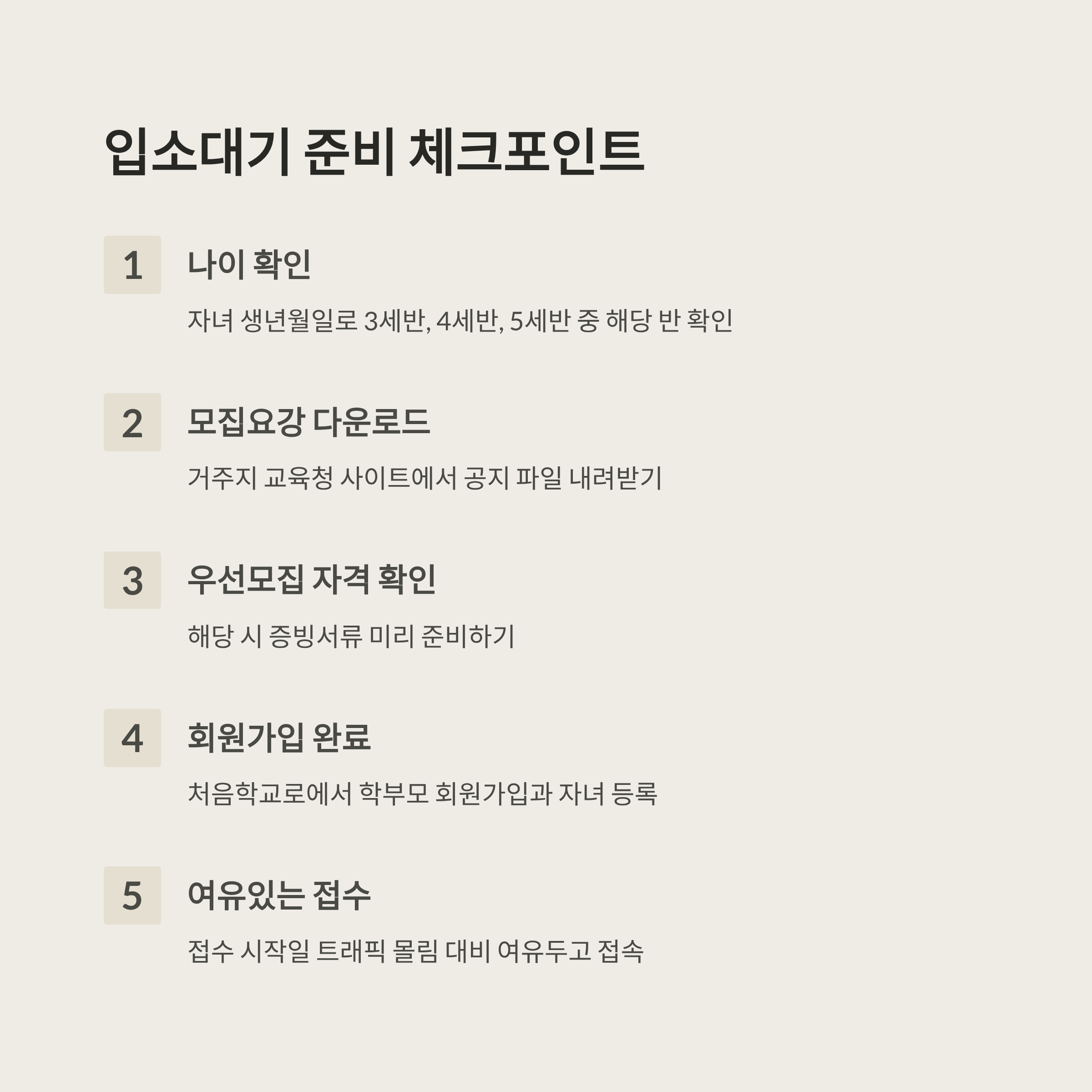 이 글은 2026학년도 유치원 입소대기 시기와 나이 기준을 간단히 정리합니다. 또한 처음학교로 신청 절차와 우선모집 일반모집 차이를 이해하기 쉽게 설명합니다. 마지막으로 9월부터