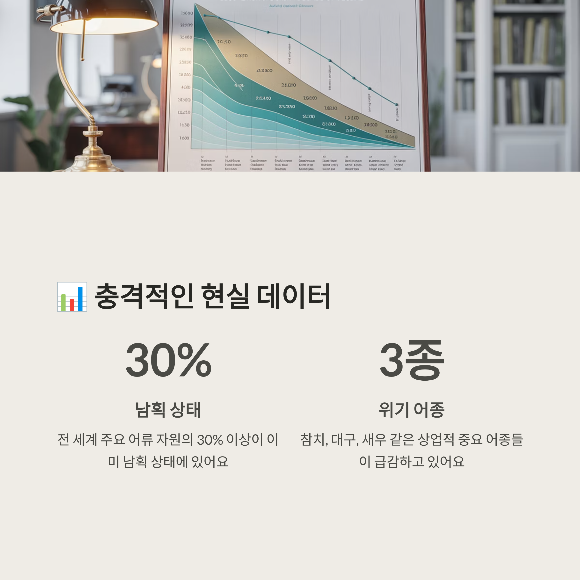 국제 환경 보고서에 따르면, 전 세계 주요 어류 자원의 30% 이상이 이미 남획 상태에 놓여 있습니다. 특히 참치, 대구, 새우 같은 상업적으로 중요한 어종들이 급감하면서 시장 가격 상승과 공급 불안정 현상이 반복되고 있습니다.