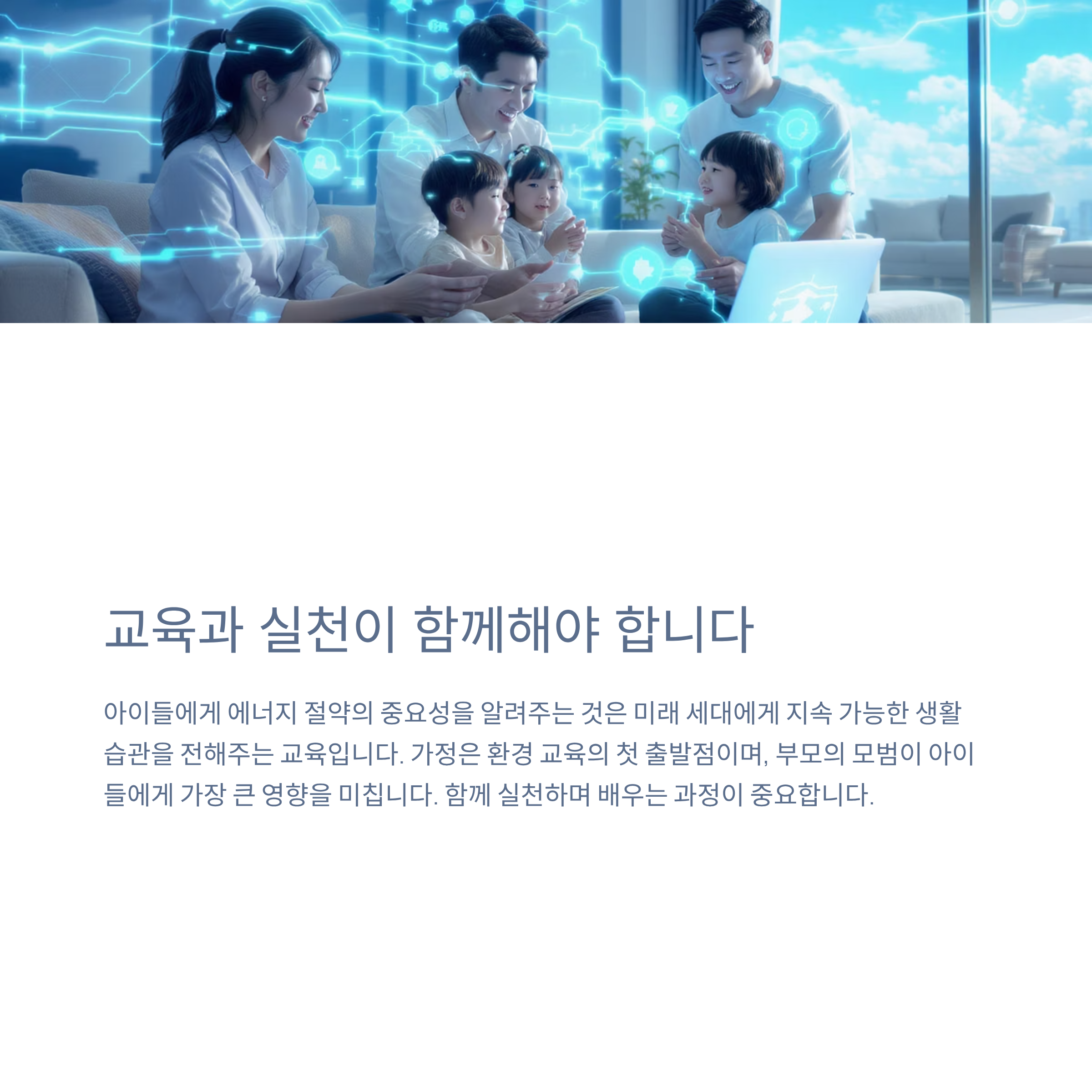 아이들에게 에너지 절약의 중요성을 알려주는 것은 미래 세대에게 지속 가능한 생활 습관을 전해주는 교육입니다. 가정은 교육의 첫 출발점이기도 합니다.
