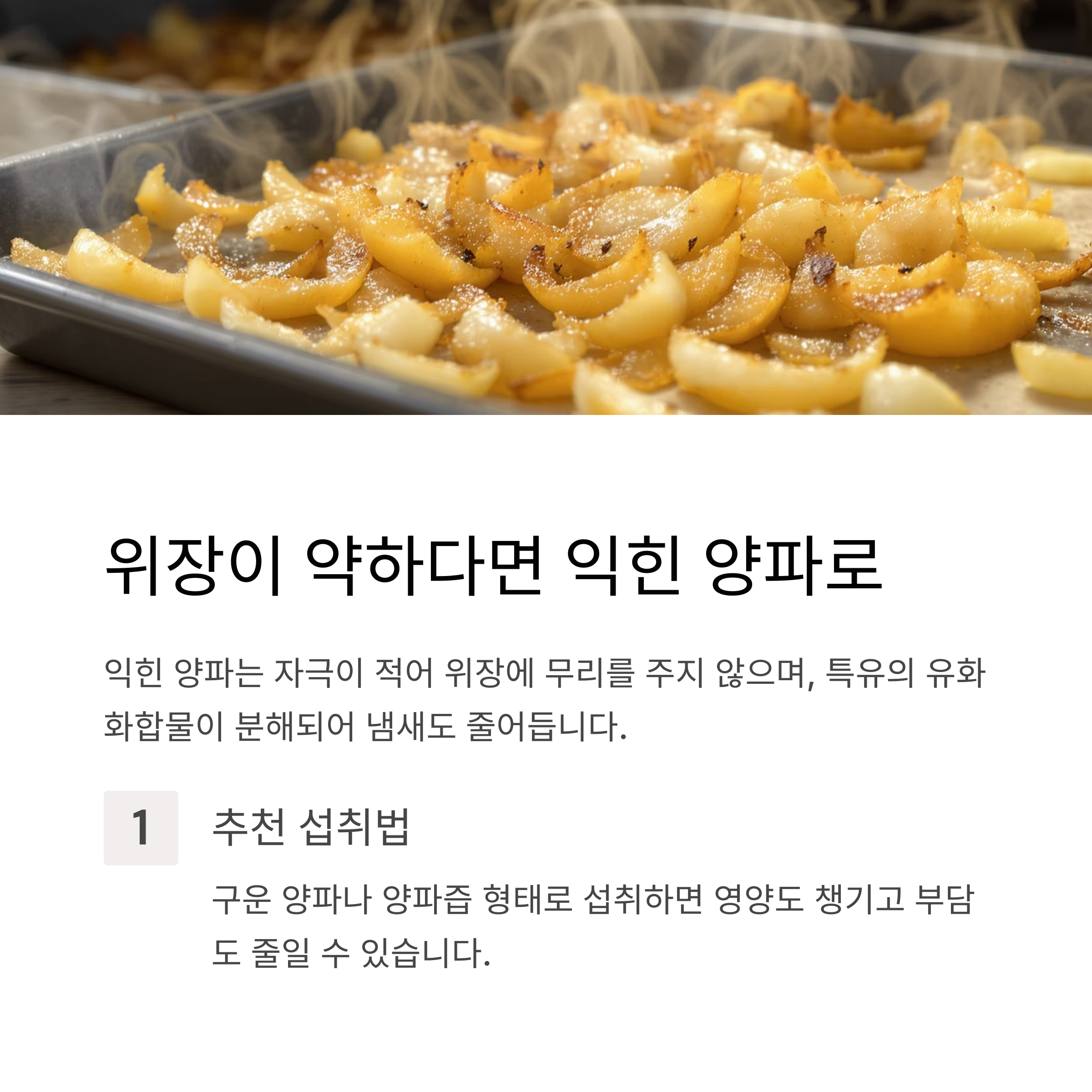 구운 양파나 양파즙 형태로 섭취하면 영양도 챙기고 부담도 줄일 수 있습니다.