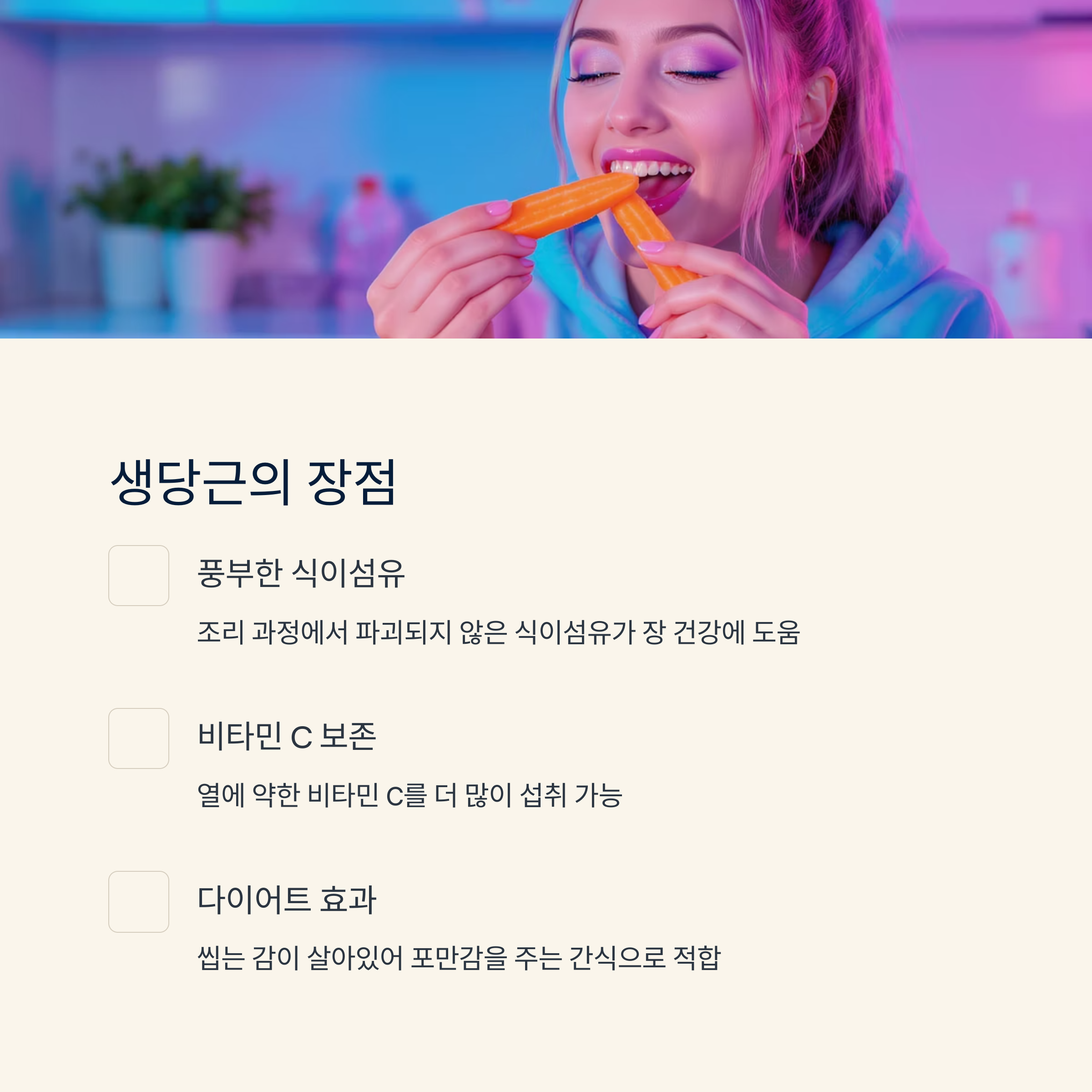 생당근의 장점: 식이섬유 풍부