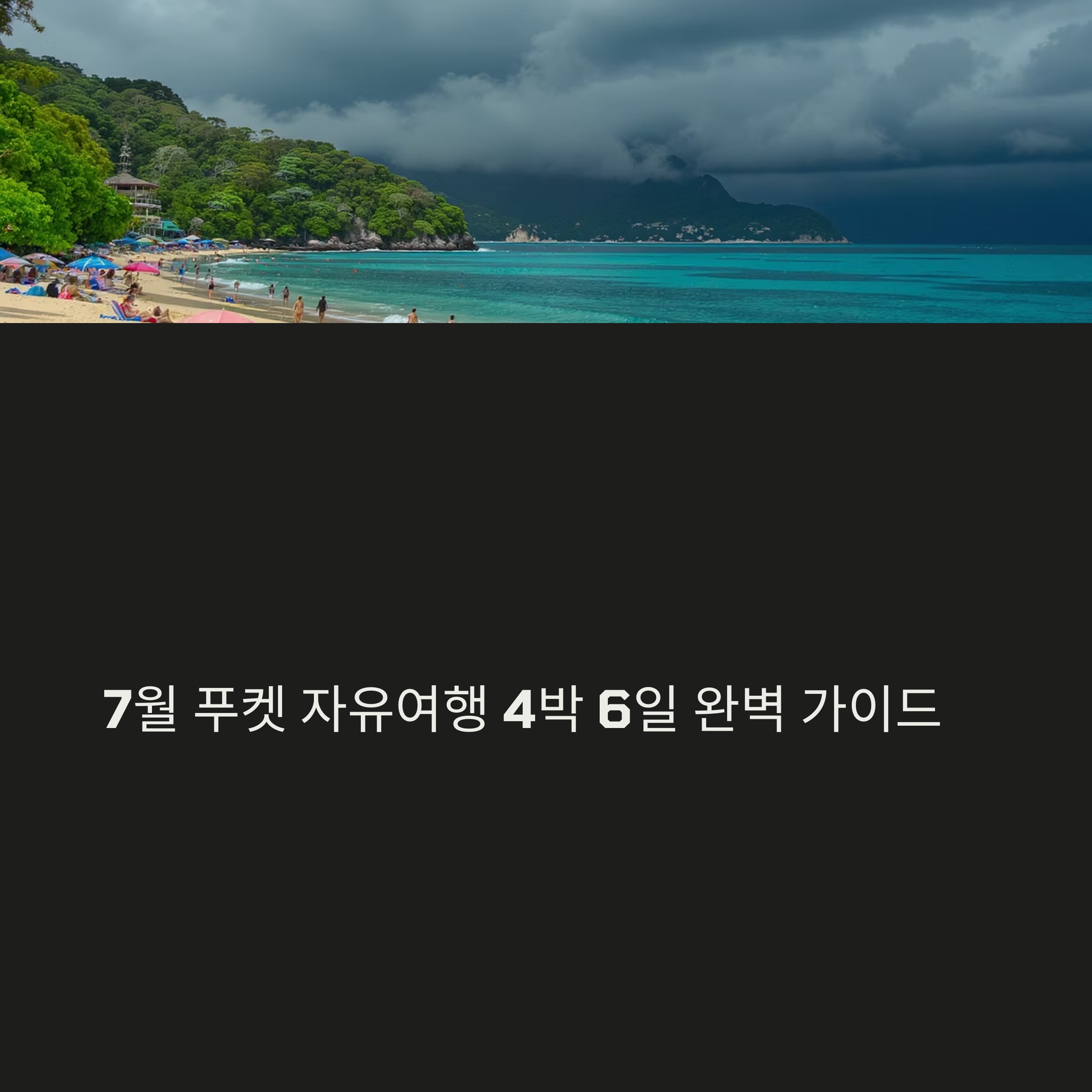 무더운 여름이 시작되는 7월, 많은 이들이 동남아 여행을 망설이지만 푸켓은 오히려 이 시기에만 느낄 수 있는 특별한 매력을 품고 있습니다. 우기라는 계절적 특성을 잘 활용하면 더욱 여유롭고 저렴한 여행을 완성할 수 있습니다. 2025년 최신 트렌드를 반영한 4박 6일 일정은 비 오는 날을 고려한 실내 활동과 날씨가 좋은 날 즐길 수 있는 해양 액티비티를 조화롭게 구성해 푸켓의 진수를 느낄 수 있도록 합니다. 여행자는 기상 예보에 유연하게 대처할 준비와 함께 효율적인 동선, 알찬 일정 구성으로 푸켓의 자연과 문화를 균형 있게 체험할 수 있습니다. 이 글에서는 7월 푸켓 여행의 날씨 특징, 실용 준비물부터 매일매일 구체적인 여행 코스와 꿀팁까지 담아 누구나 쉽게 따라 할 수 있는 실전 가이드를 제시합니다.