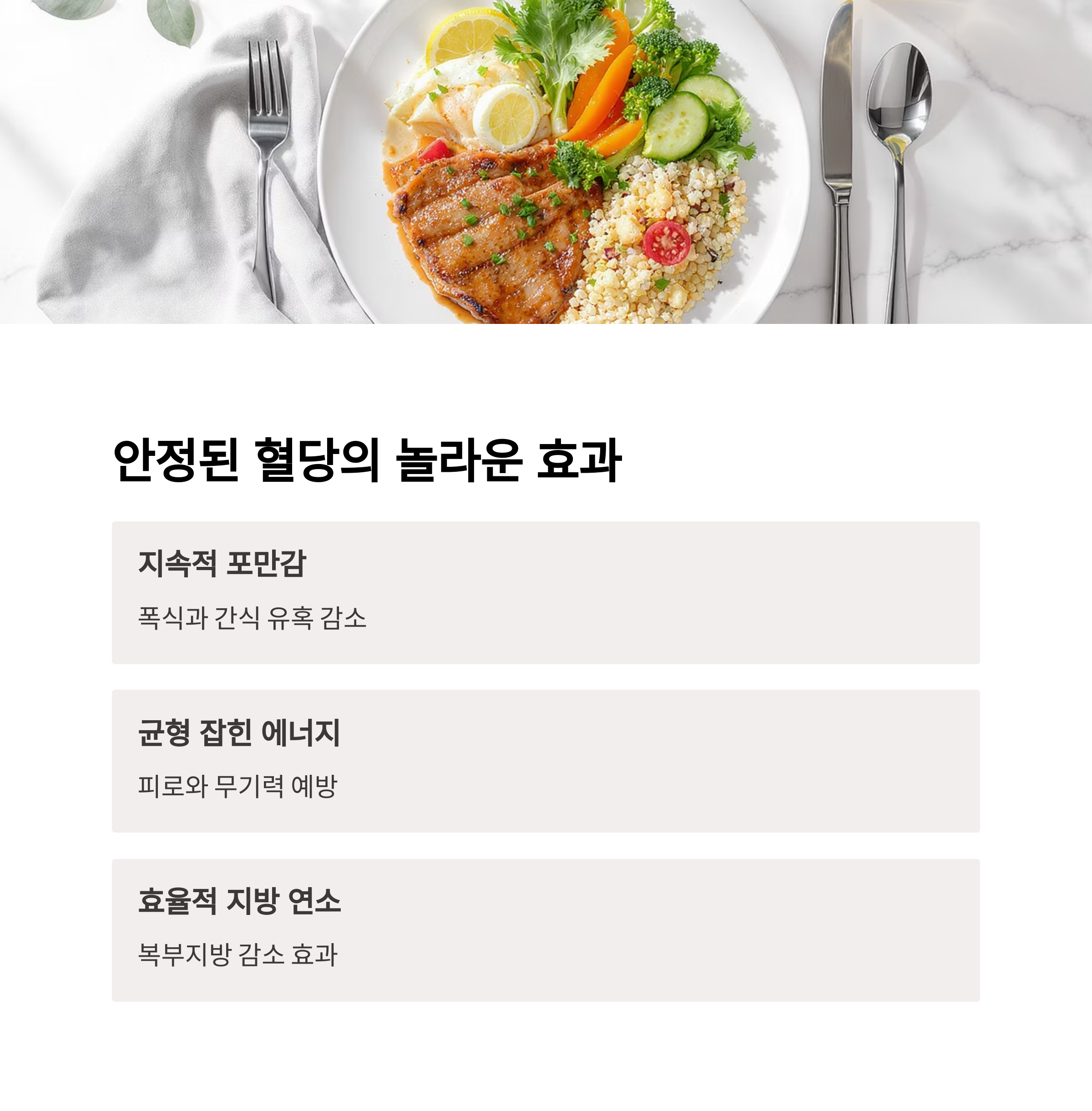 혈당이 안정되면 포만감도 오래 지속됩니다. 또한 에너지 레벨이