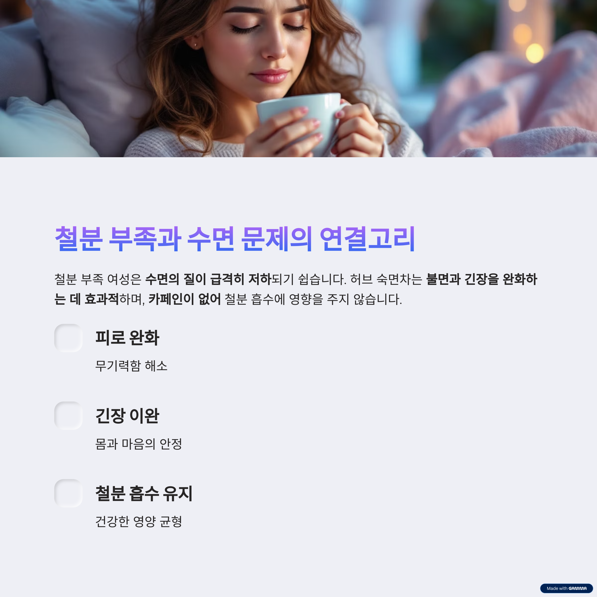 숙면은 철분 결핍에서 회복되는 중요한 과정이며, 이때 긴장을 완화하는 차 한 잔은