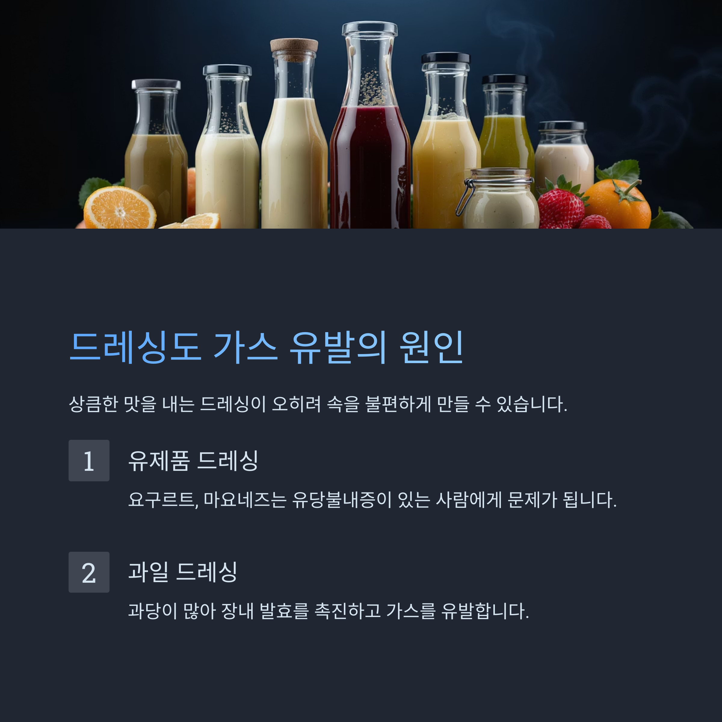 과일 드레싱도 과당이 많아 장내 발효를 촉진합니다.