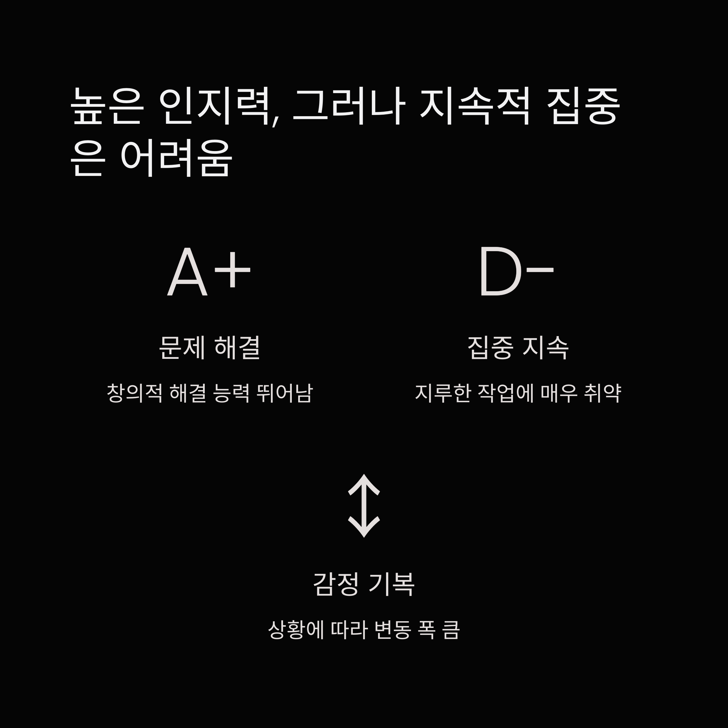 이들은 자신의 뛰어난 인지 능력을 활용하면서도 집중 유지에 어려움을 겪는 점이