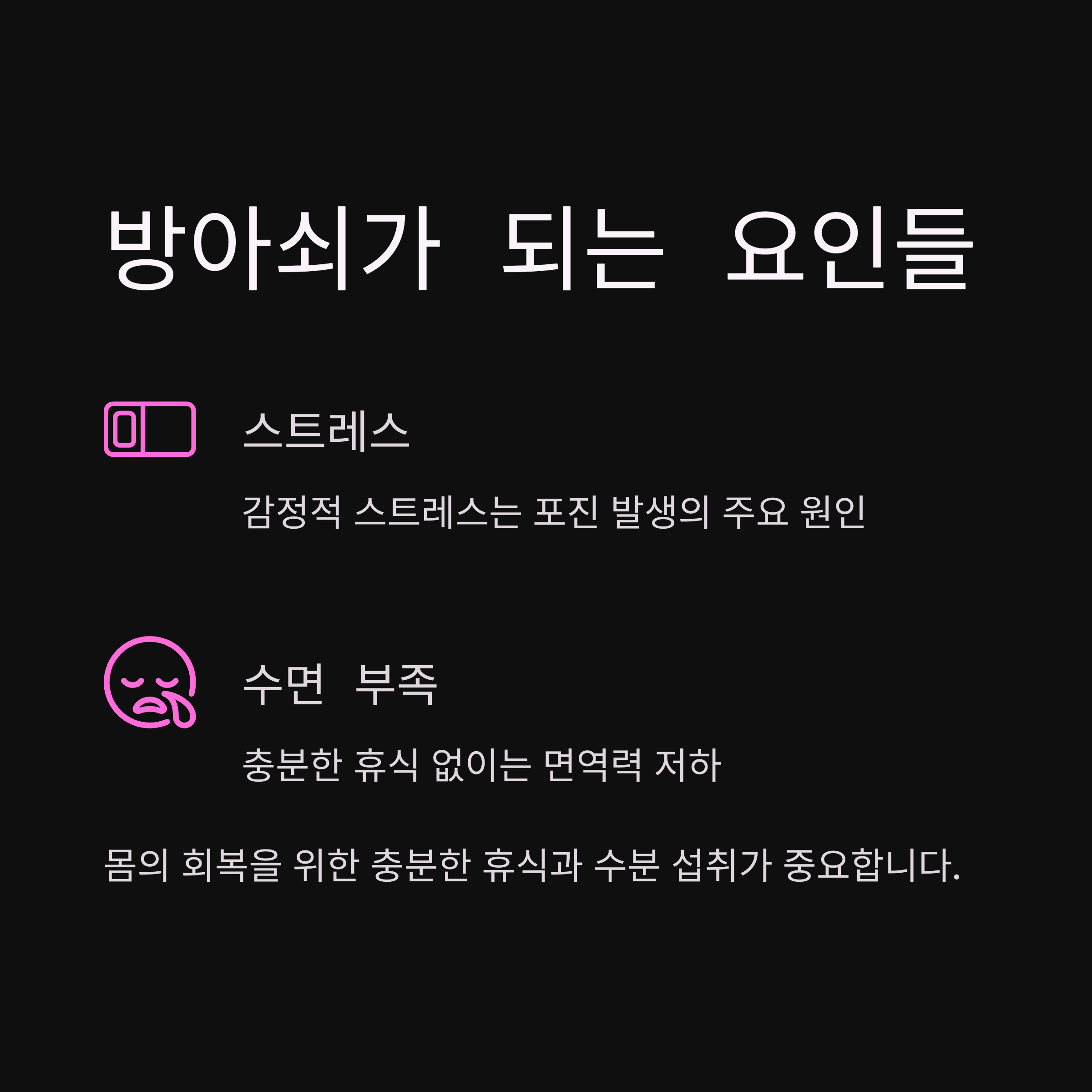 포진은 피곤하고 면역력이 떨어졌을 때 가장 많이 나타납니다.