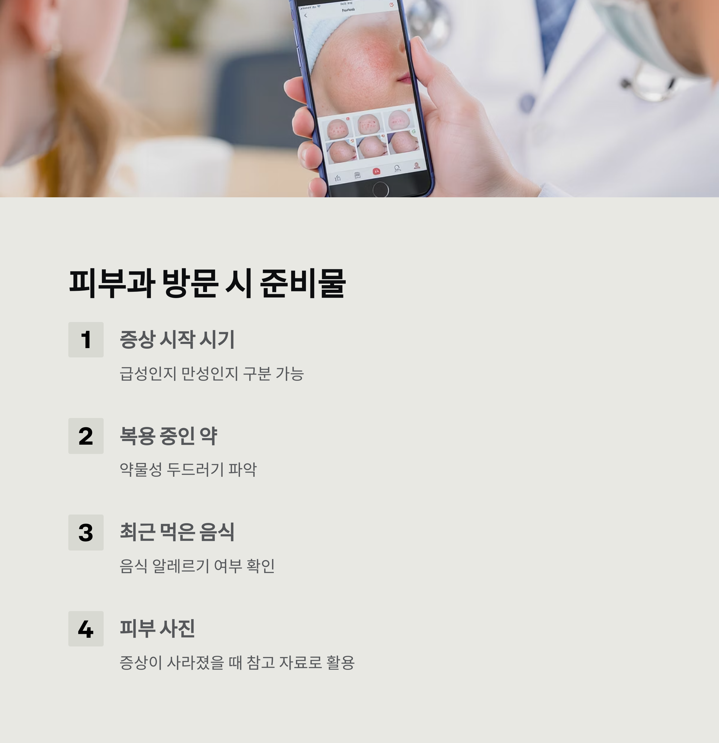 이외에도 피부 사진을 미리 찍어가는 것도 큰 도움이 됩니다.