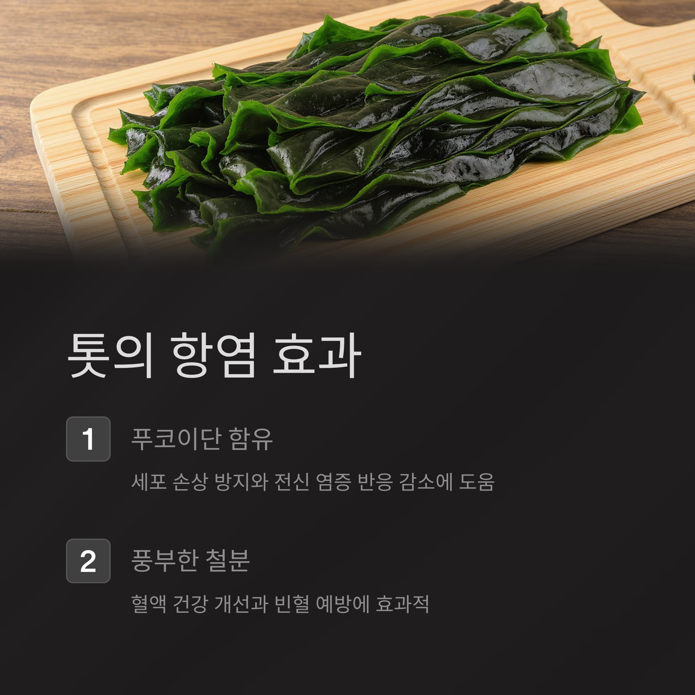 무엇보다 톳에는 푸코이단과 같은 항염 화합물이 포함되어 있어
