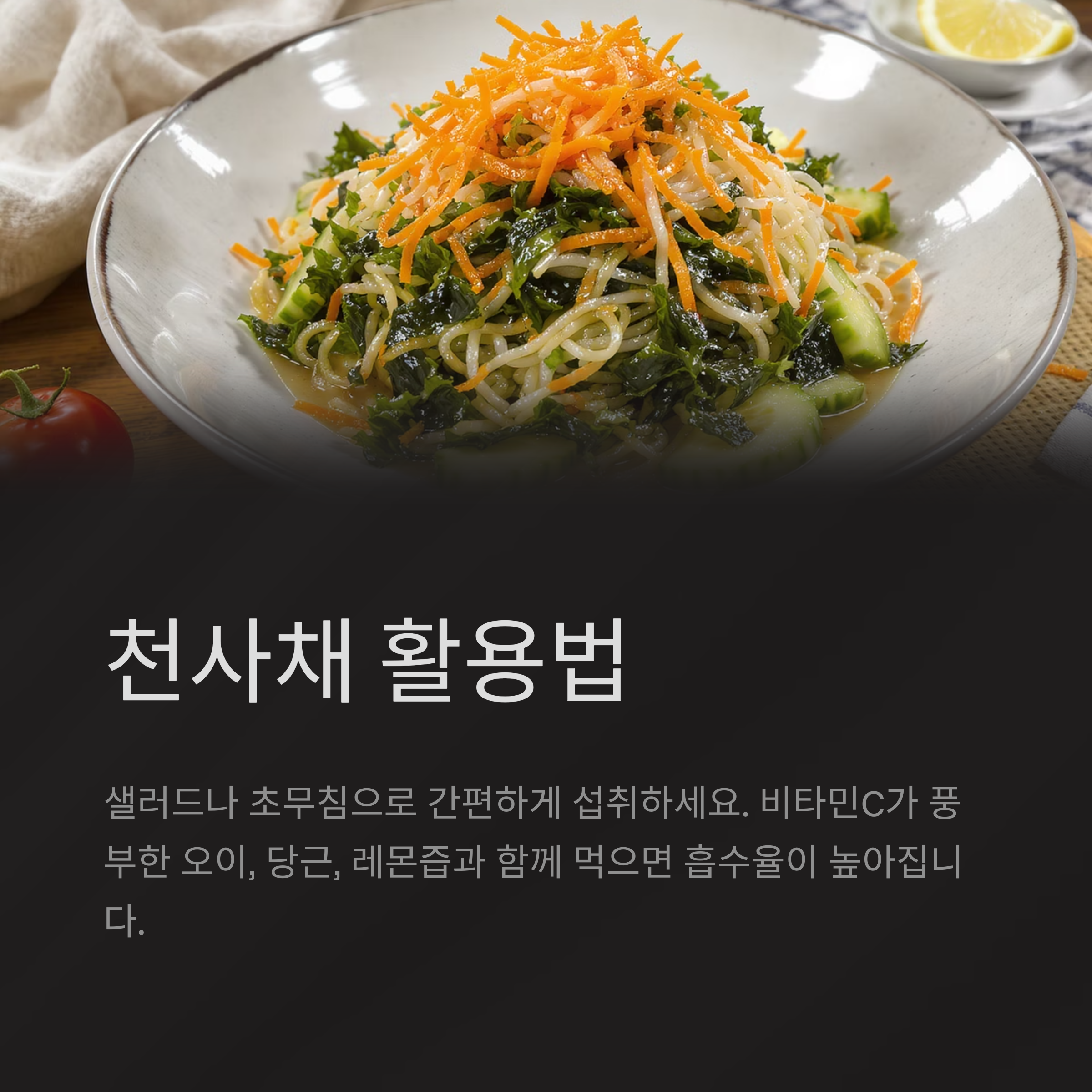 천사채는 샐러드나 초무침 형태로 섭취할 수 있습니다.