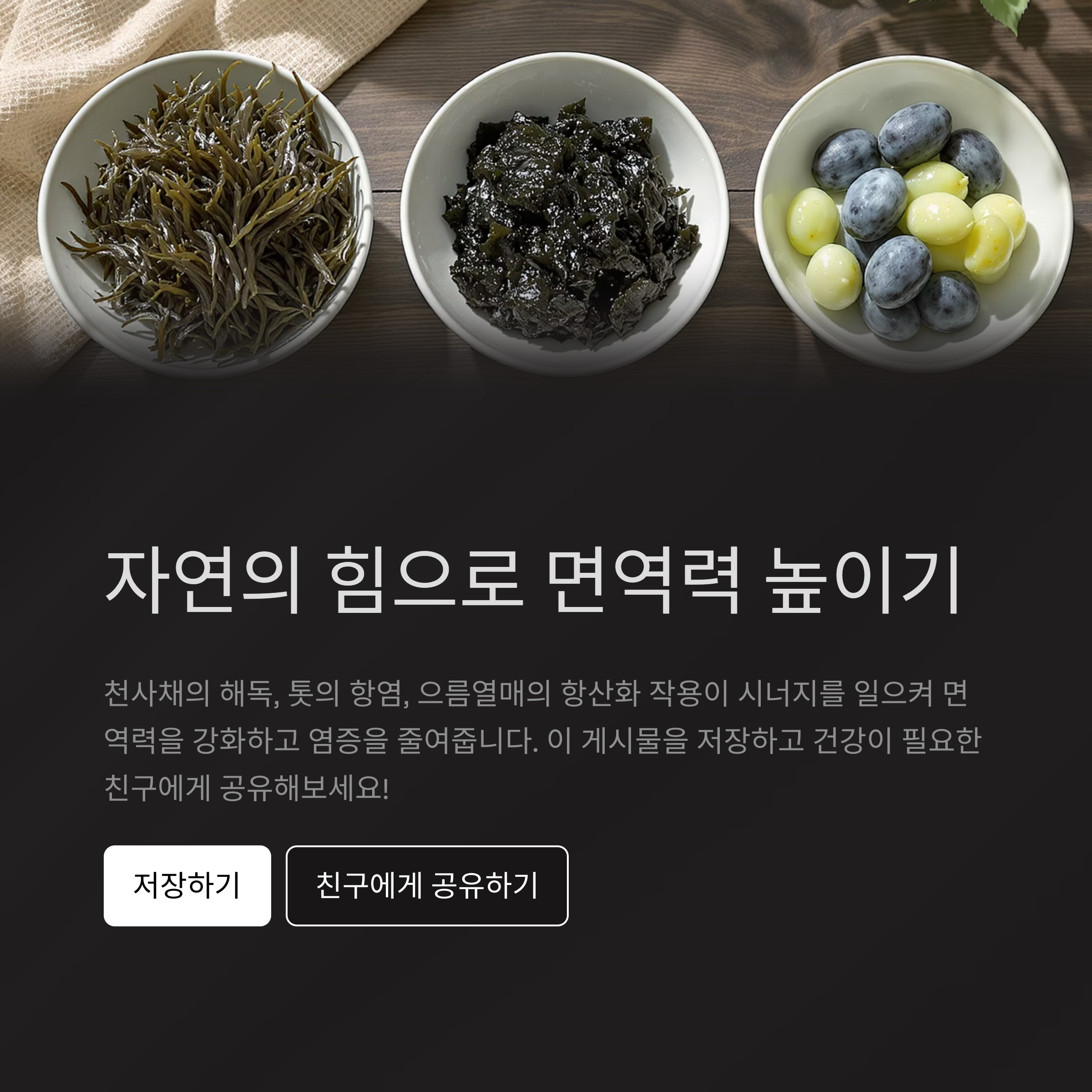 장 건강이 바로 면역력과 직결되기 때문에 천사채는 자연 면역 증진식으로 꼽힙니다.