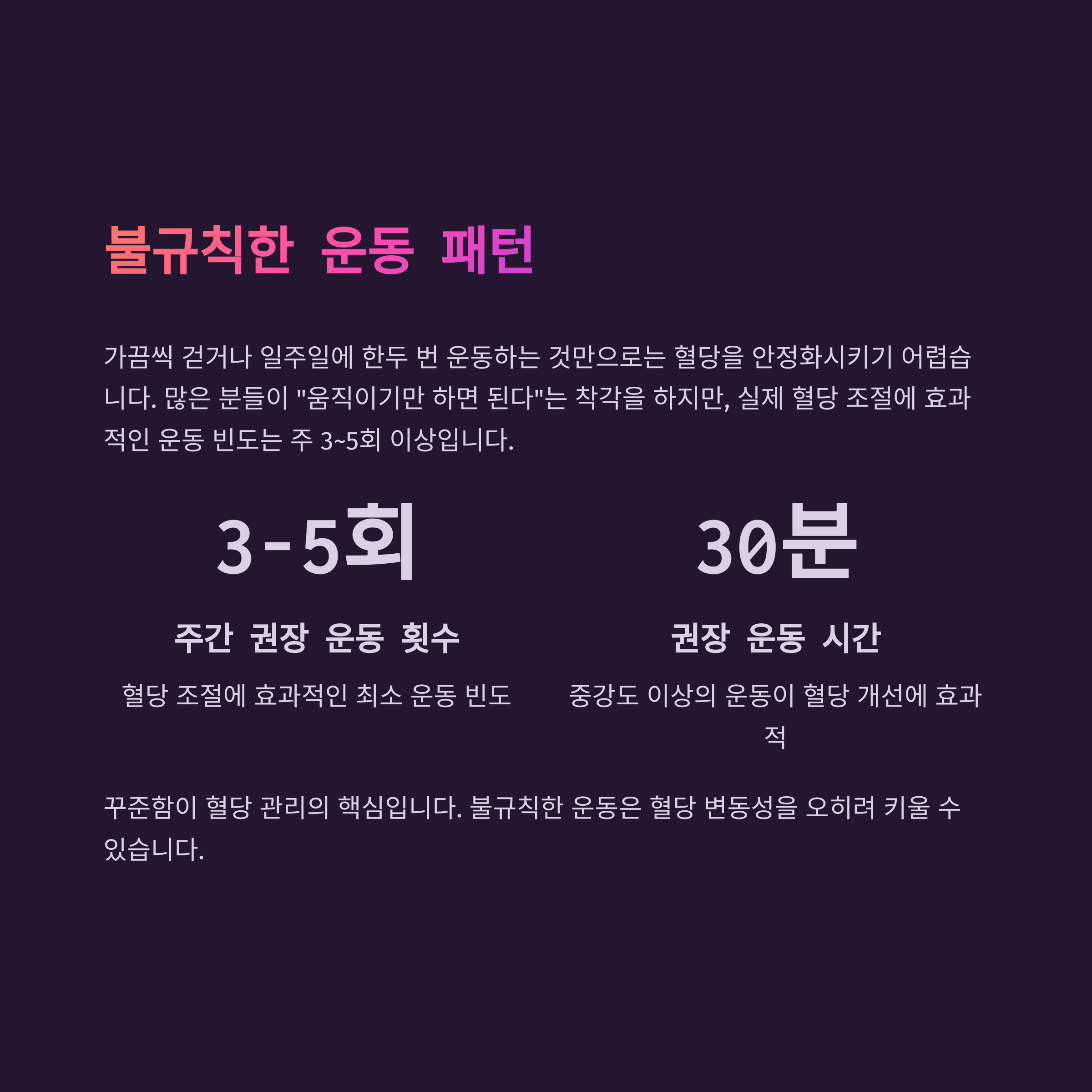 실제 혈당 조절에 효과적인 운동 빈도는 주 3~5회 이상입니다.