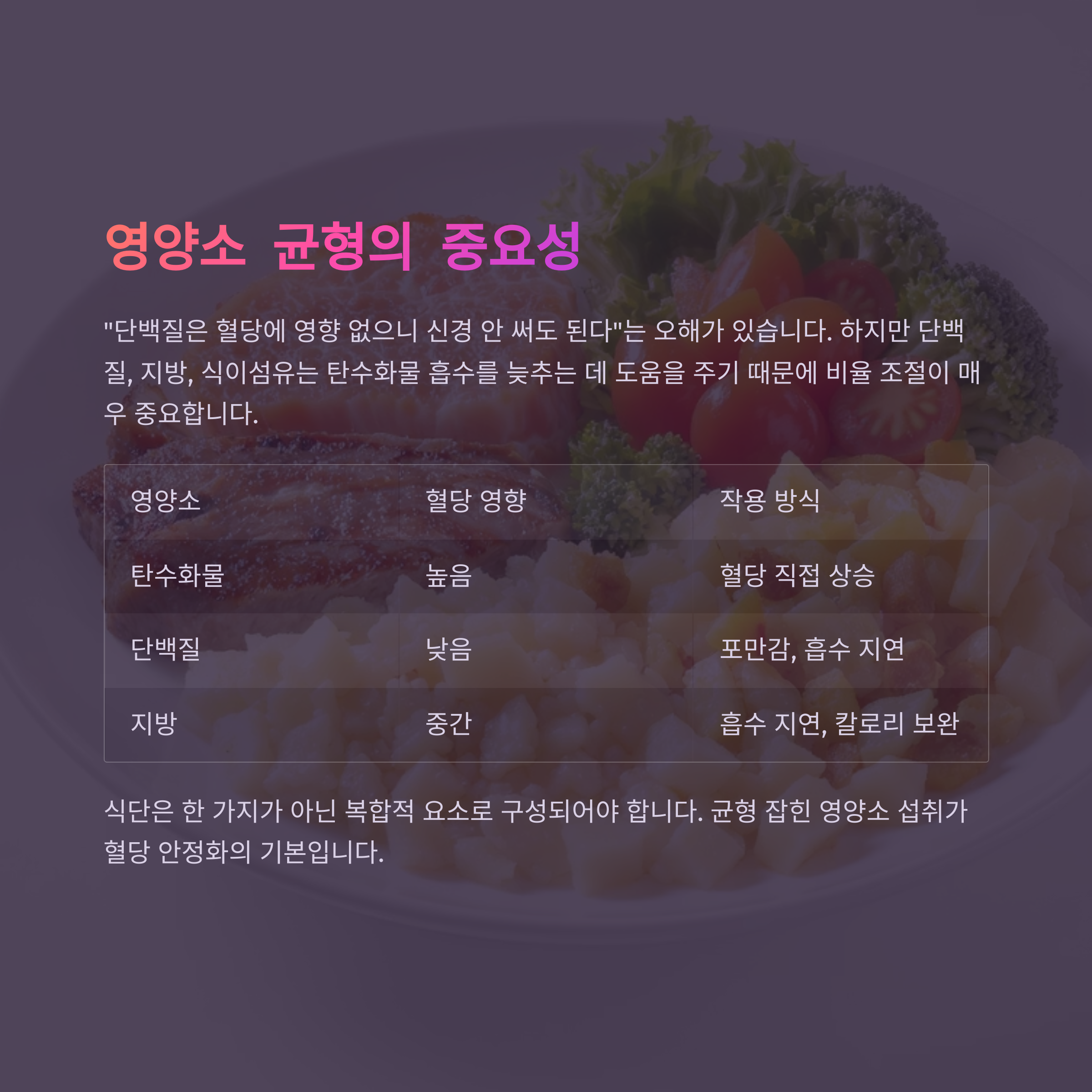 | 영양소 | 혈당 영향 | 작용 방식 설명 |