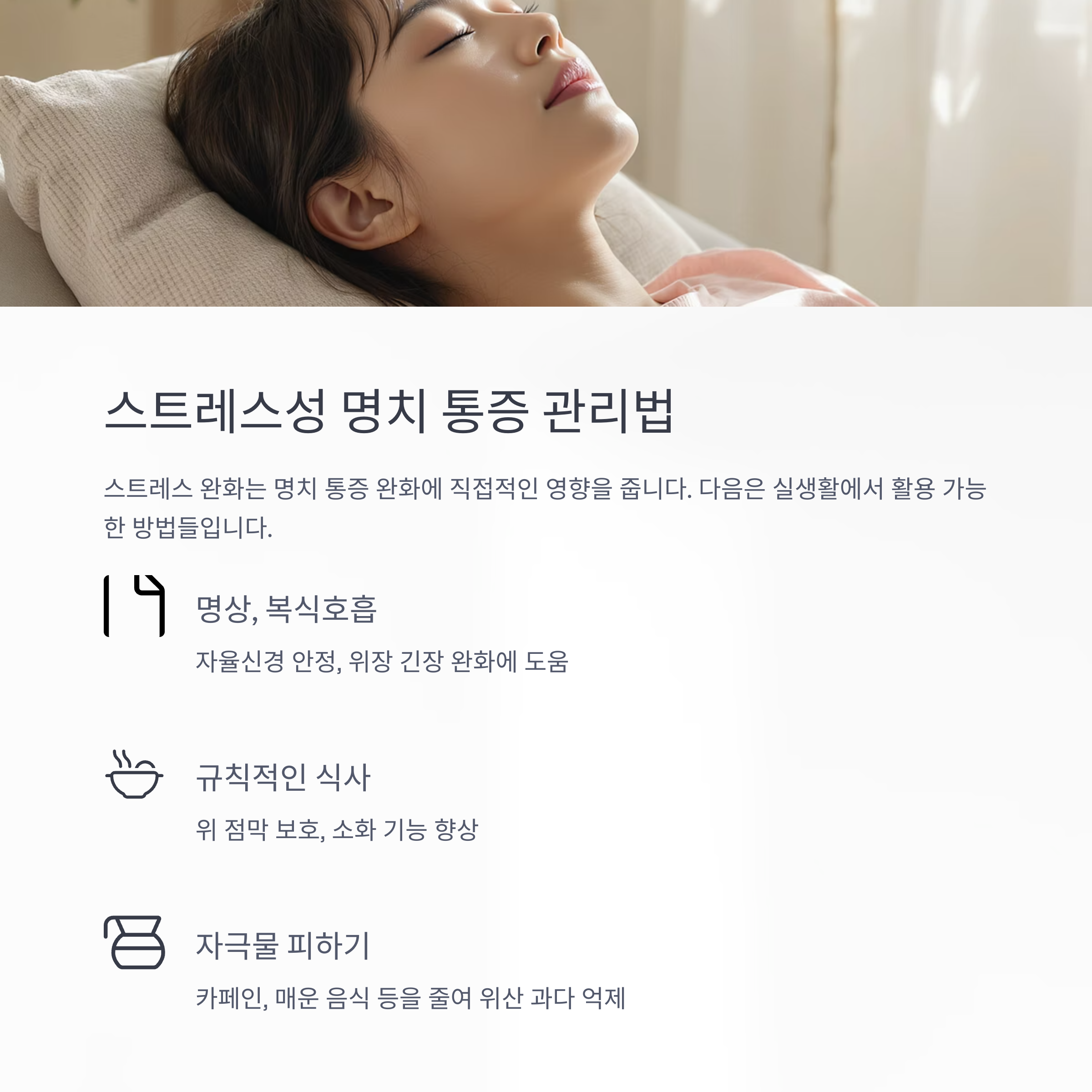 스트레스 완화는 명치 통증 완화에 직접적인 영향을 줍니다.