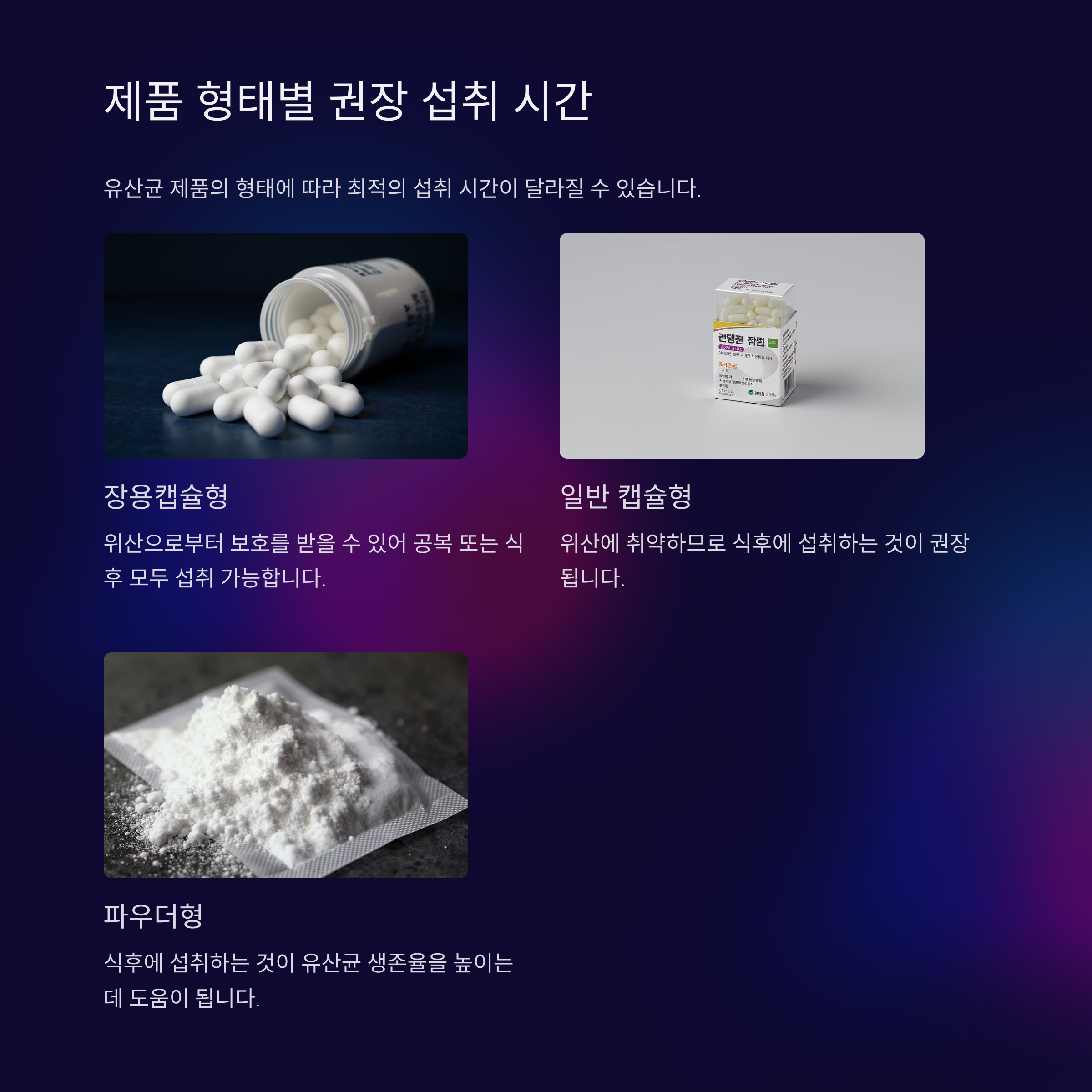 유산균 제품의 형태에 따라 섭취 시간이 달라질 수 있습니다.