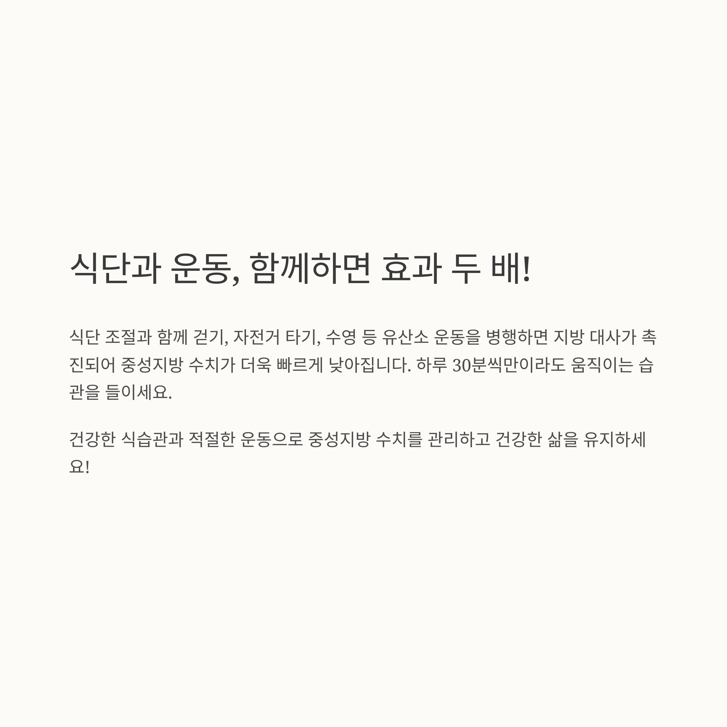 지방 대사가 촉진되어 중성지방 수치가 더욱 빠르게 낮아집니다.