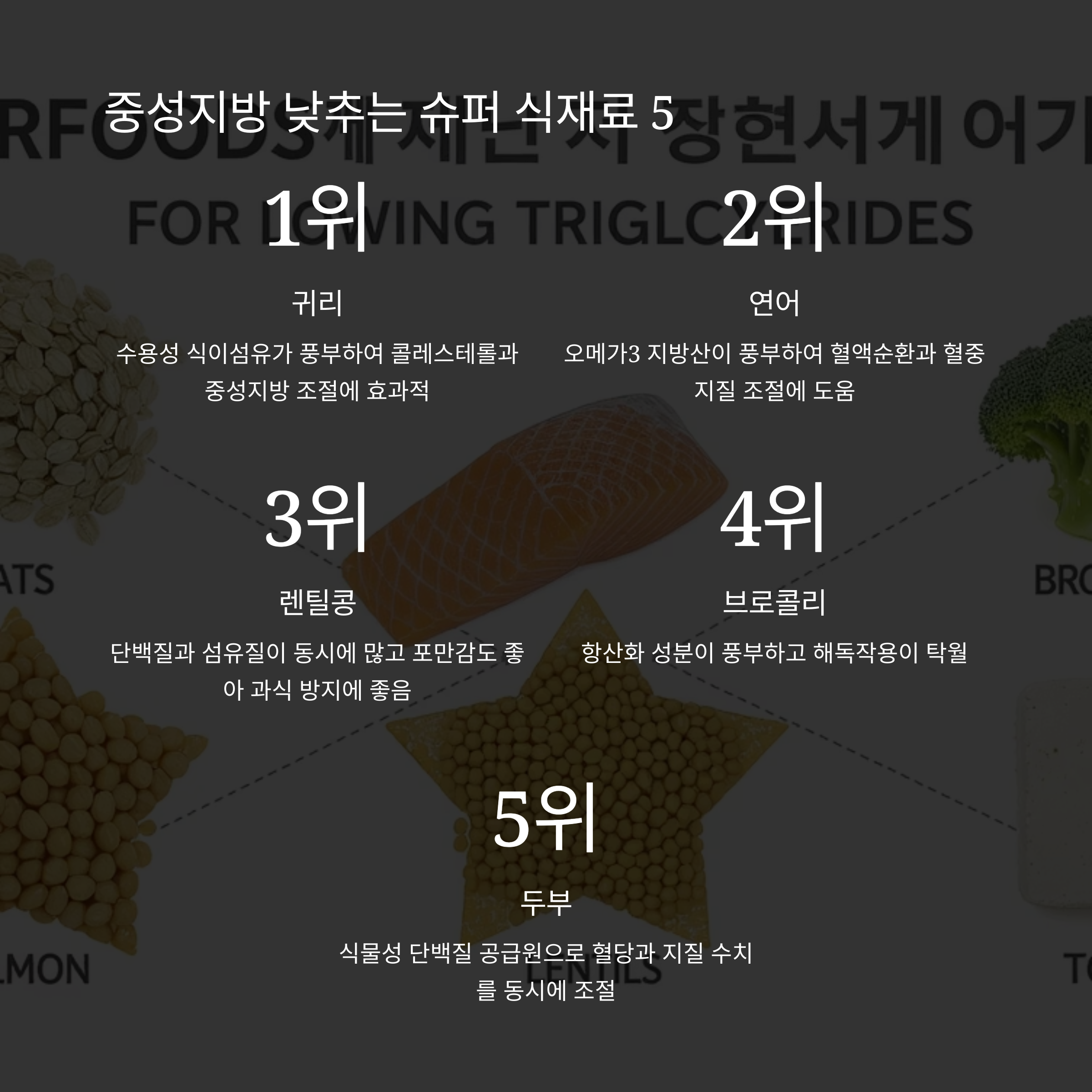 중성지방을 낮추는 데 도움되는 식재료 베스트 5
