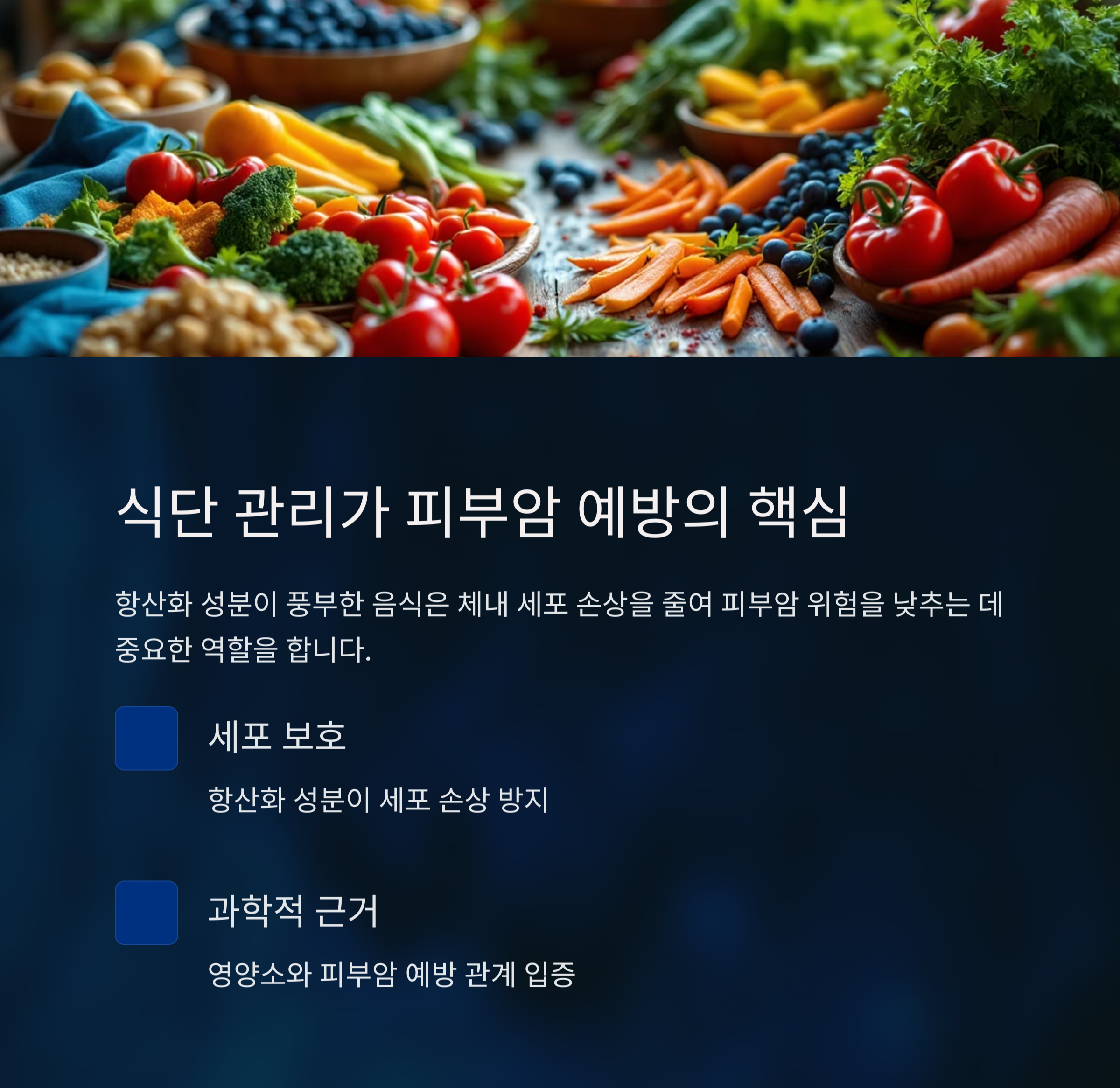 이번 글에서는 피부암 예방에 도움이 되는 식단 구성과 영양소에 대해