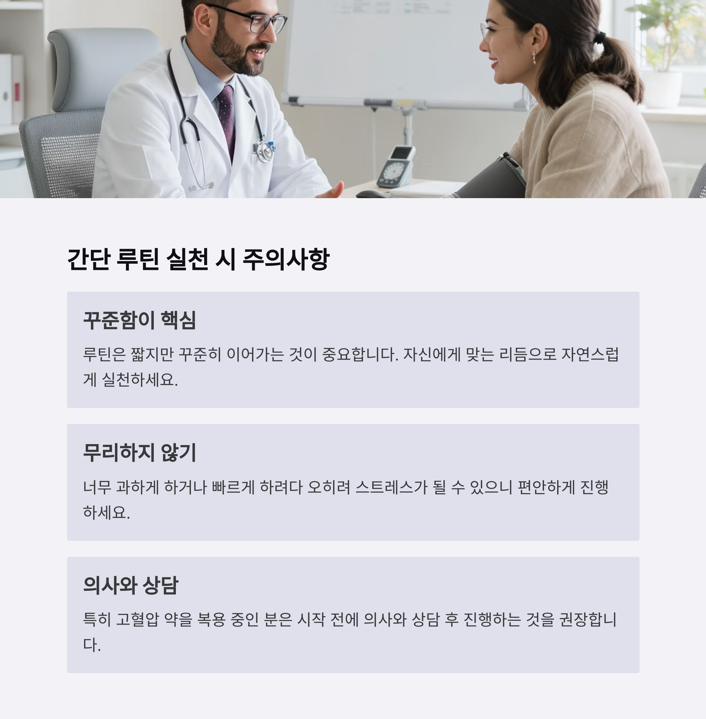 루틴은 짧지만 꾸준히 이어가는 것이 중요합니다. 너무 과하게 하거나