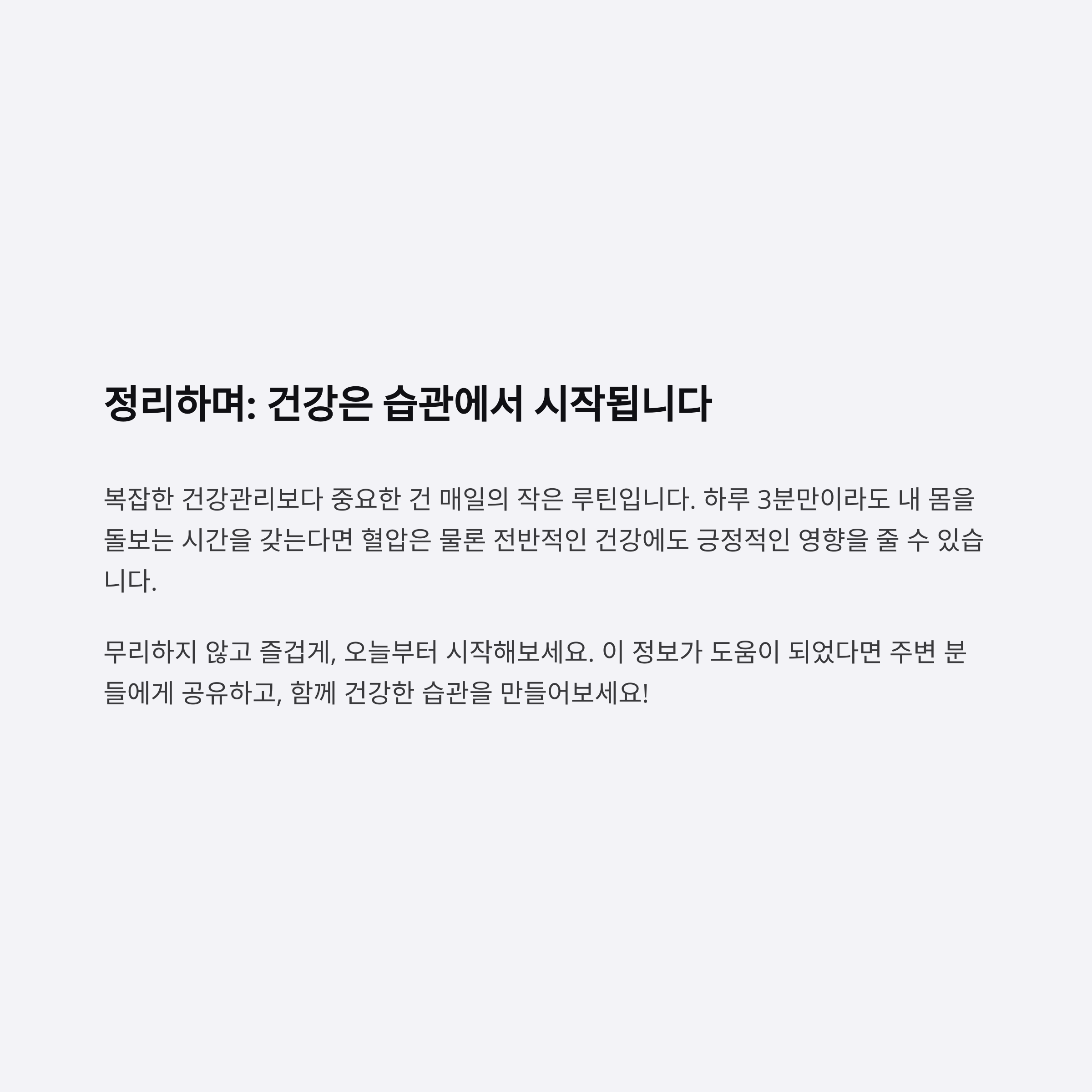 정리하며: 건강은 습관에서 시작됩니다