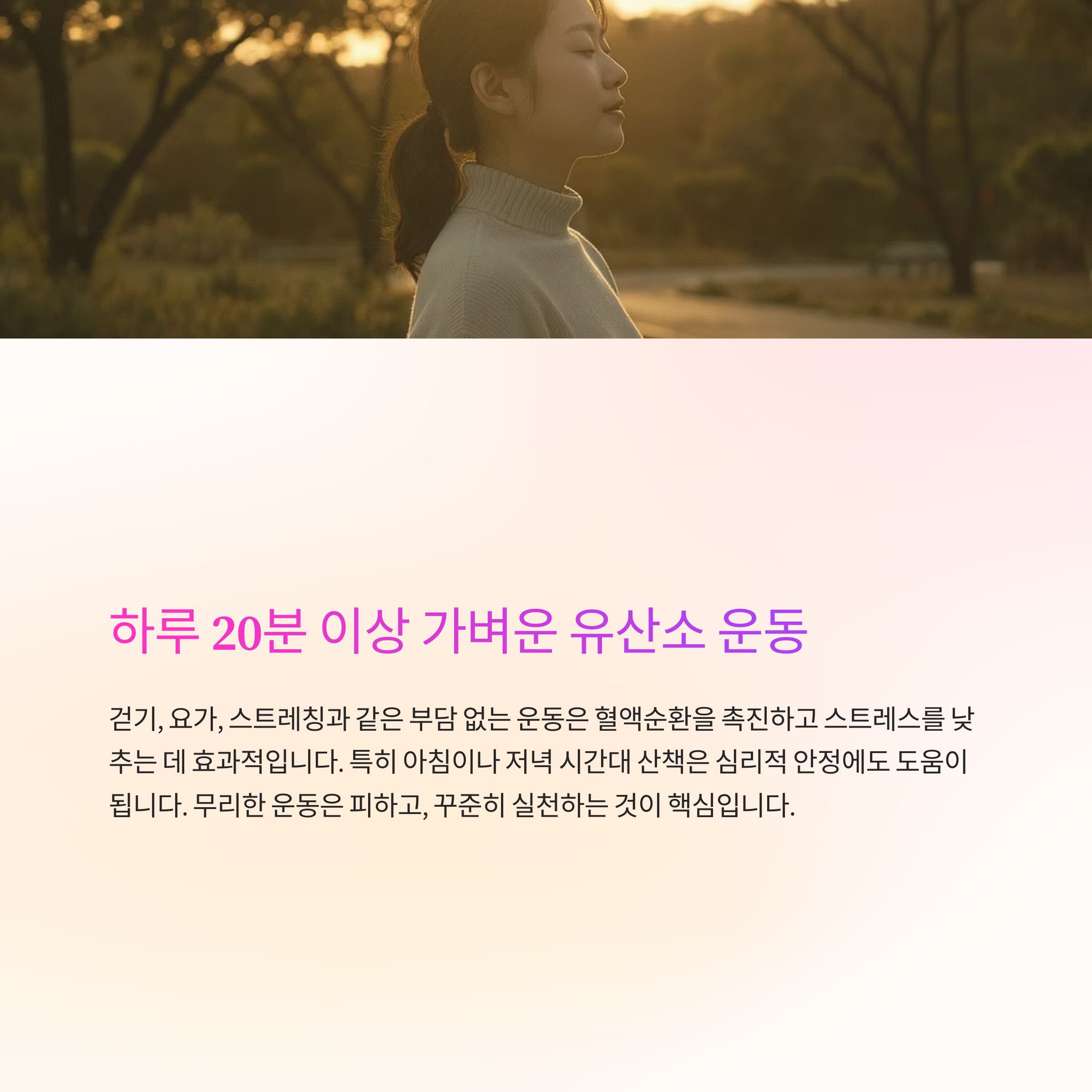 매일 10분이라도 호흡 명상이나 복식 호흡 루틴을 시도해보세요.