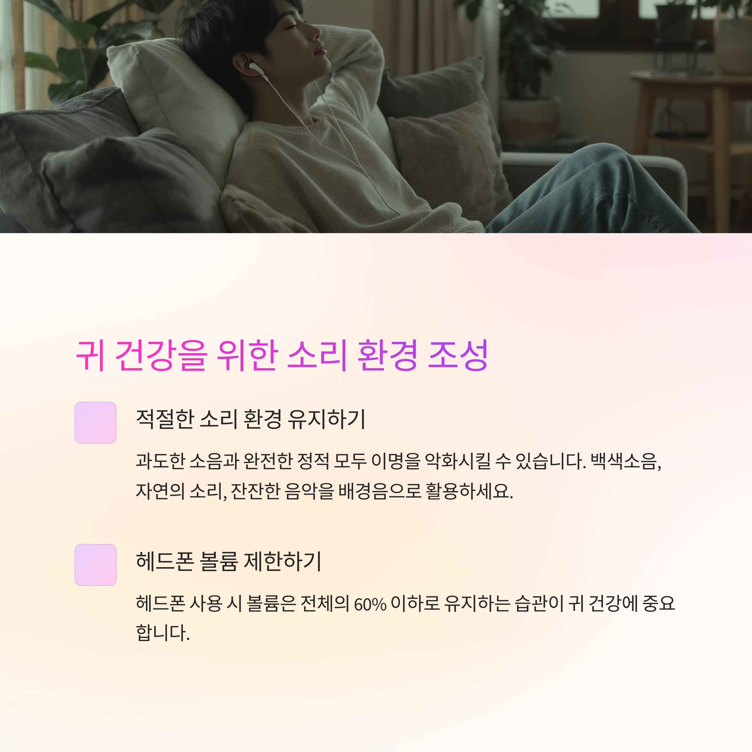 귀 건강을 위한 소리 환경 조절