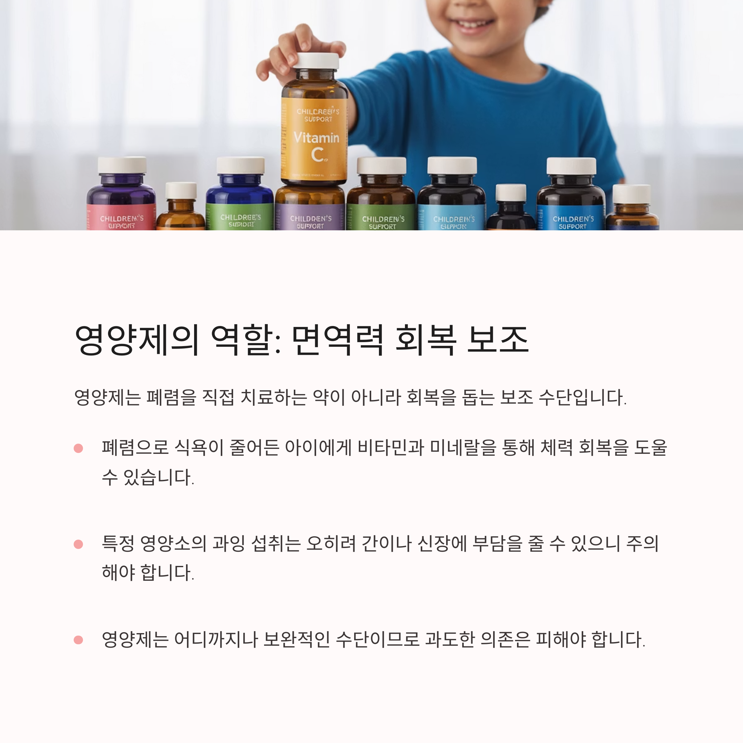 영양제는 폐렴을 치료하는 약이 아니라 회복을 돕는 보조 수단입니다.