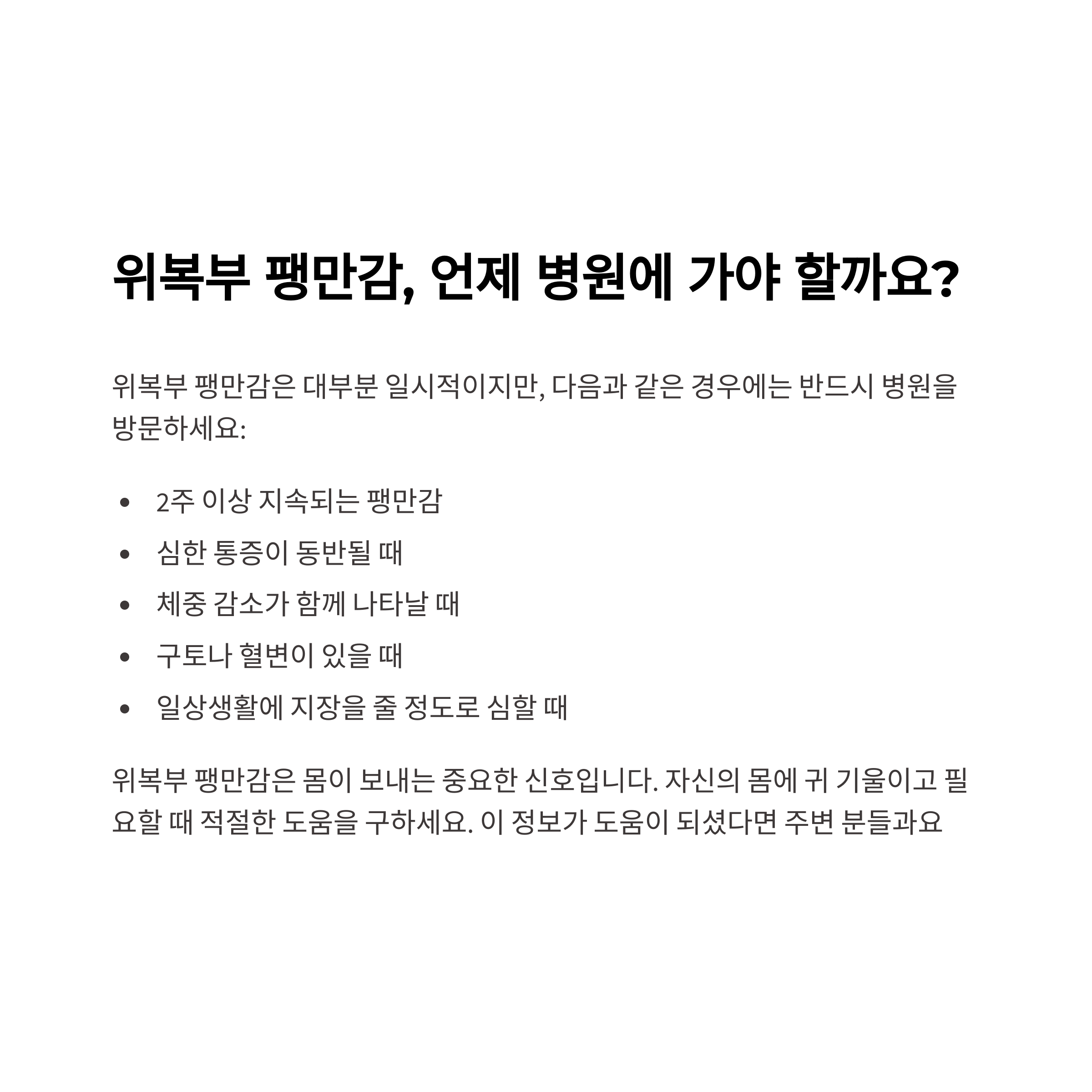 이 경우에는 소화기 문제가 없어도 팽만감이 반복될 수 있으며, 가볍게 운동하거나 따뜻한 찜질로 완화가 가능합니다.