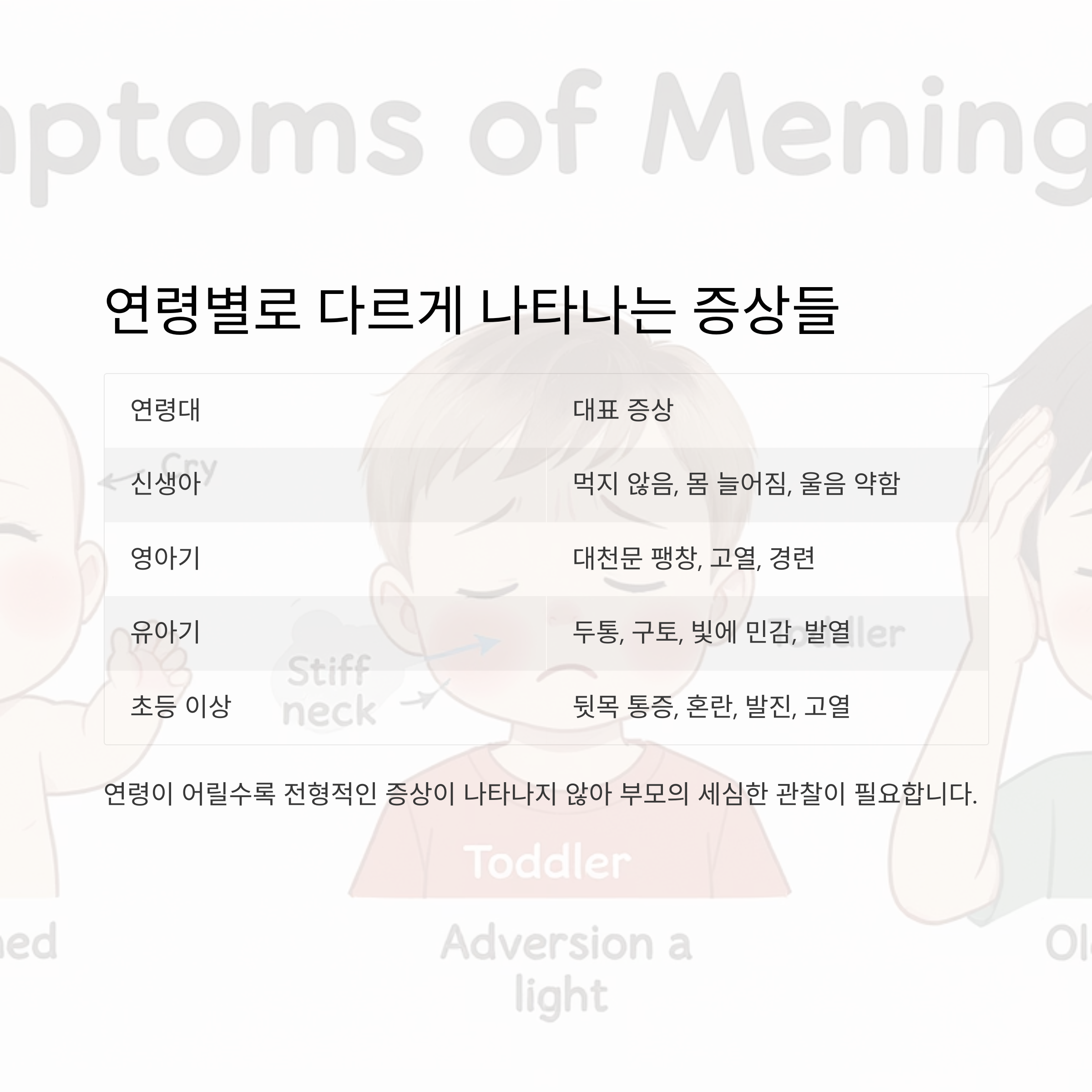 소아 뇌수막염, 연령별로 다르게 나타나는 증상들